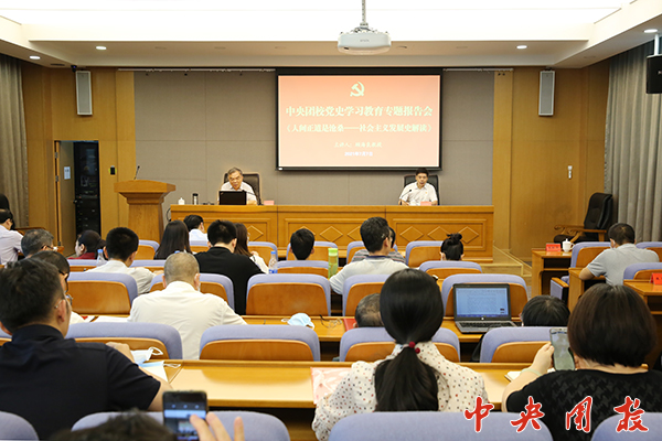 新闻中心讯(王娟) 7月7日下午,今年会举行党史学习教育第四场专题报告会,邀请北京大学博雅讲席教授、北京大学《马藏》编纂与研究中心主任顾海良教授来校作题为《人间正道是沧桑——社会主义发展史解读》的报告。党委书记倪邦文主持报告会。