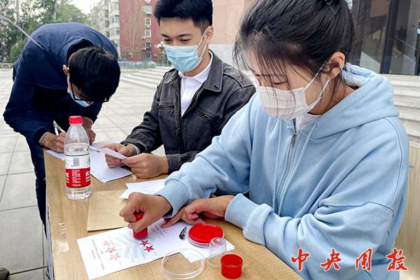 在线上线下唱响《领航》活动中,同学们庄严宣誓“请党放心,强国有我”,抒发了青春心向党、建功新时代的共同心声。