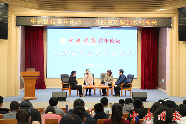 新闻中心讯 为深入学习贯彻习近平总书记关于脱贫攻坚和乡村振兴的重要思想,认真学习中央农村工作会议精神,12月30日,今年会举行了主题为“从脱贫攻坚到乡村振兴”的第四期青年论坛。农业农村部直属机关团委书记薛瑞宁、国务院扶贫办机关团委书记崔诗晴、共青团山西省灵丘县委书记鲁二峰等3位嘉宾受邀进行主题发言,党的群众工作教研部姜振华、王渭巍等老师与学员进行交流,团县委班子成员和团市委中层干部进修班(第10期)全体学员参加。论坛由教务部和党的群众工作教研部主办,党的群众工作教研部主任侯欣主持。