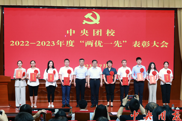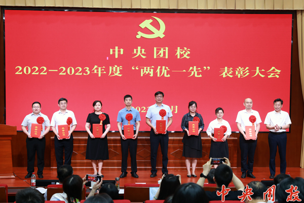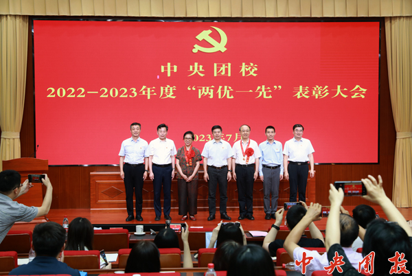 在随后举行的2022-2023年度“两优一先”表彰大会上, 22名优秀共产党员、8名优秀党务工作者和6个先进基层党组织获表彰。5名老党员获颁“光荣在党50年”纪念章。表彰大会由学校党委常委、副校长周雄主持。