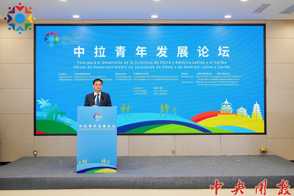 新闻中心讯 7月18日,以“汇聚青年力量,共促发展振兴”为主题的中拉青年发展论坛在陕西西安举办。来自伊比利亚美洲青年组织及9个拉美和加勒比国家的青年组织负责人、青年项目骨干,与中国相关领域的青年代表共50余人汇聚一堂,共同探讨中拉青年发展合作的新机遇、新使命。论坛由中华全国青年联合会主办,中国青年政治学院联合主办,陕西省青年联合会、西安外国语大学承办。
