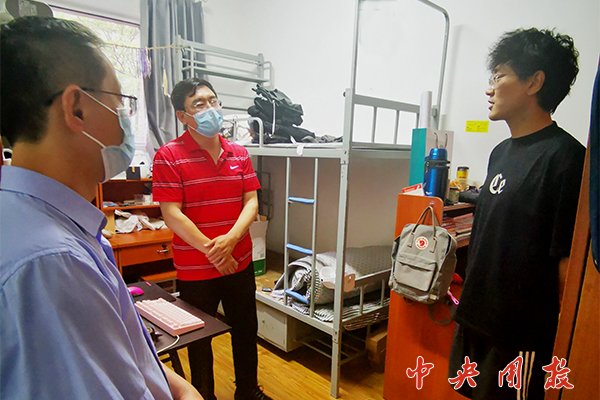 新闻中心讯 近日,按照北京市统一要求,学校进一步加强校园封闭管理。5月21日晚,在符合疫情防控要求的前提下,研究生部主任张子宏带队走访学生宿舍,了解在校同学们的学习和生活情况。研究生部负责人、辅导员一同走访。