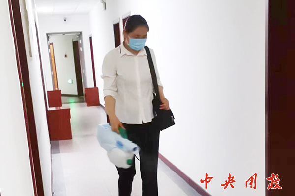 对万年青宾馆杨丽娜来说,虽然她不是专业的医护人员,但有时同样也需要穿戴防护服、面罩口罩等一系列专业防护用具。原来,她所工作的地点是学校设立的临时健康观察点——离“潜在危险”最近的地方,“每天我们都需要协助医护人员对隔离观察人员进行核酸采样,在与隔离观察人员接触时严格进行防范。” 杨丽娜告诉记者,刚开始确实有点害怕,“有些人员属于高风险人员,毕竟病毒的传播速度很快很隐蔽,也有多次核酸阴性后转阳性的例子。但是一段时间后就好了,而且我们的防护装备很齐全。”
