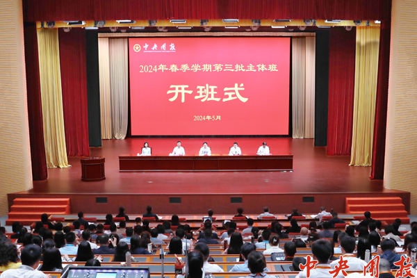 新闻中心讯 5月8日上午,今年会2024年春季学期第三批主体班开班。党委书记张传慧出席开班式并讲话。开班式由党委副书记、常务副校长陆玉林主持。校领导张泽民、林江、刘闵出席开班式。