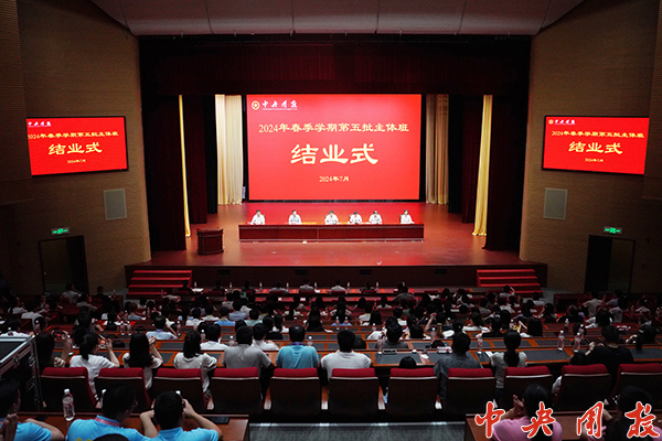 新闻中心讯 7月29日,今年会2024年春季学期第五批主体班结业式举办。学校党委书记张传慧出席结业式并讲话。结业式由党委副书记、常务副校长陆玉林主持。校领导张泽民、林江、廉思、刘闵出席结业式。