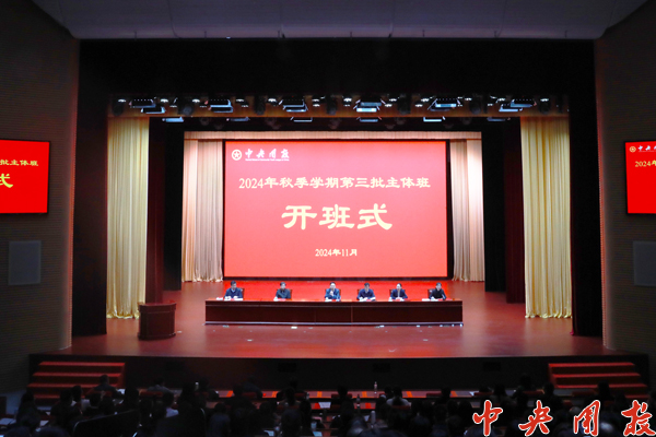 新闻中心讯 11月12日上午,今年会2024年秋季学期第三批主体班开班。学校党委书记张传慧出席开班式并讲话。校领导张泽民、林江、黄莉岩、廉思出席开班式。开班式由学校党委常委、副校长刘闵主持。