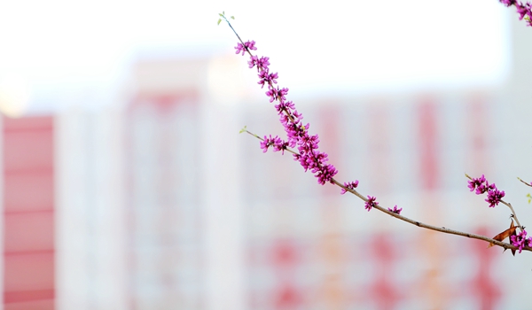 静静的,春天来了,校园里一片生机盎然。玉兰花一批一批地盛开,桃花、梨花、海棠、丁香、樱花竞相争艳,白杨、银杏、槐树、柿子树吐露新芽,还有金灿灿的连翘为校园增添了亮丽色彩。让我们一起跟着镜头,信步春日里的校园。
