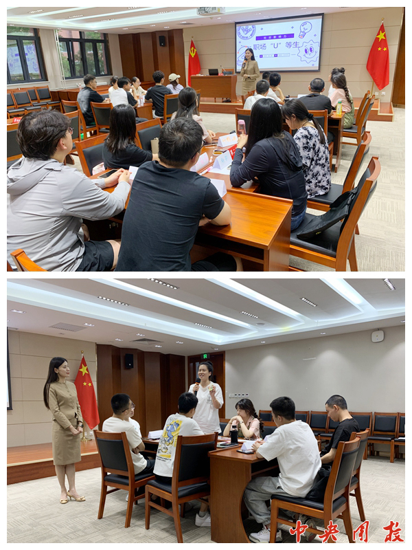 6月18日晚,首都机场服务专家、北京青年讲师团成员张媛以《职场‘U’等生》为题进行专题辅导。党委常委、副校长林江参加活动。课程通过职场经历分享、欧卡互动体验、交流展示等形式,就职业行为习惯、职场心态培养、职场礼仪文化等内容进行辅导。在欧卡互动体验环节,张媛指导同学们挖掘自身优点完善自我介绍,并结合同学们的现场表现,从表达、仪态等方面给出了个性化提升建议。
