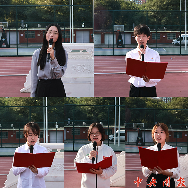 在庄严的国旗下,5名青年教师和研究生代表依次作“国旗下的演讲”。教务部青年教师张泽芳以《弘扬爱国主义精神 践行青春使命担当》为题,结合个人成长与工作经历,深情阐释了对爱国主义的理解,并呼吁青年学子将“小我”融入“大我”,在工作岗位上践行初心使命,为党的青年工作事业贡献智慧与力量。青少年工作系研究生莫冰玥,中共党史与青运史系研究生邢恩慧,社会工作系研究生韩佳正,青少年工作系研究生刘星雨分别以《守抗战精神初心 显青年担当本色》《传承抗战精神 谱写青春担当》《青年挺膺担当 奏响时代强音》《奋进新时代 青年勇担当》为题进行了演讲,表达了新时代青年赓续红色血脉、勇担时代使命的坚定信念。