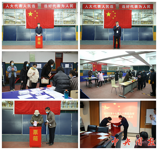 本次海淀区人大代表换届选举工作启动以来,学校党委高度重视,成立由党委书记倪邦文任组长,党委常委、副校长张泽民任常务副组长的选举工作小组,建立项目化、扁平化的工作机制,在紫竹院街道选举分会指导下,严谨细致、依法规范做好各环节工作,细化工作方案、防疫措施,抓实流程演练、业务培训,加强政策宣讲、宣传动员,确保换届选举工作平稳推进。第九选区成员单位较多,作为第九选区工作组组长单位,今年会认真履行职责,与紫竹院街道选举分会加强沟通,与选区内其他单位、社区密切配合,顺利完成换届选举工作任务。