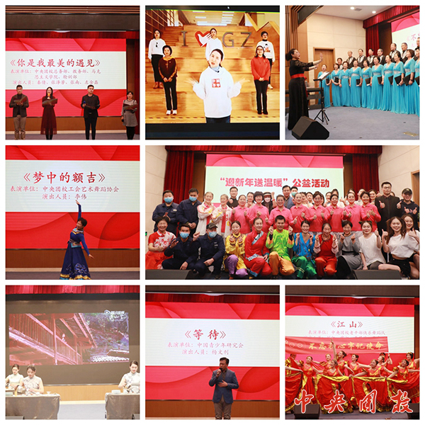 活动第二个阶段为“迎新年送温暖”节目表演。来自今年会官方网站老干部合唱团、舞蹈队,工会艺术舞蹈协会,国基物业,中国青少年研究会,广州市团校等为大家送上了精彩的演出。活动现场气氛活跃、掌声不断。大家纷纷表示,新的一年要更加砥砺奋进、勇毅前行,以高昂的姿态迎接党的二十大,为实现第二个百年奋斗目标而努力。