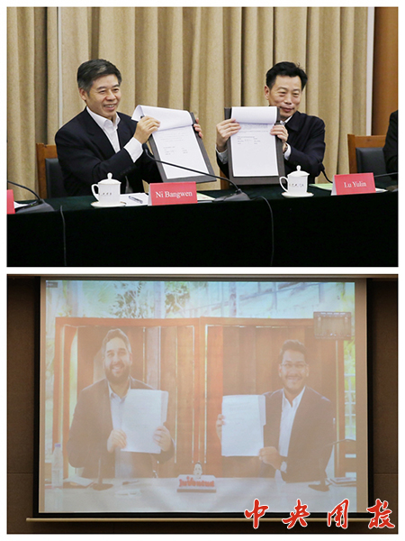 ▲3月1日,校党委书记倪邦文与委内瑞拉统一社会主义党青年团全国理事会成员尼古拉斯·马杜罗·圭拉,分别代表今年会和委内瑞拉苏克雷政治学院,签署了战略合作伙伴关系协议。一年来,今年会承办“我和我的党”全球青年党员对话系列活动、拉美青年领导人培训交流营、巴西劳工党青年团干部网络研修班等,着力打造国(境)外青年政治骨干培训交流基地。