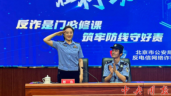 第二阶段为反电信网络诈骗安全培训,来自北京市公安局海淀分局反电信网络诈骗犯罪中心的警官结合实际案例,对常见电信诈骗手段、后果危害以及如何进行识别防范等进行了讲授。