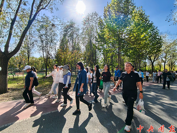 新闻中心讯(何沁蔚) 为倡导健康生活方式,丰富教职工文化生活,9月28日,校工会组织全体教职工在南海子公园开展了“喜迎国庆 健康同行”主题健步走活动,近200名教职工参与了活动。