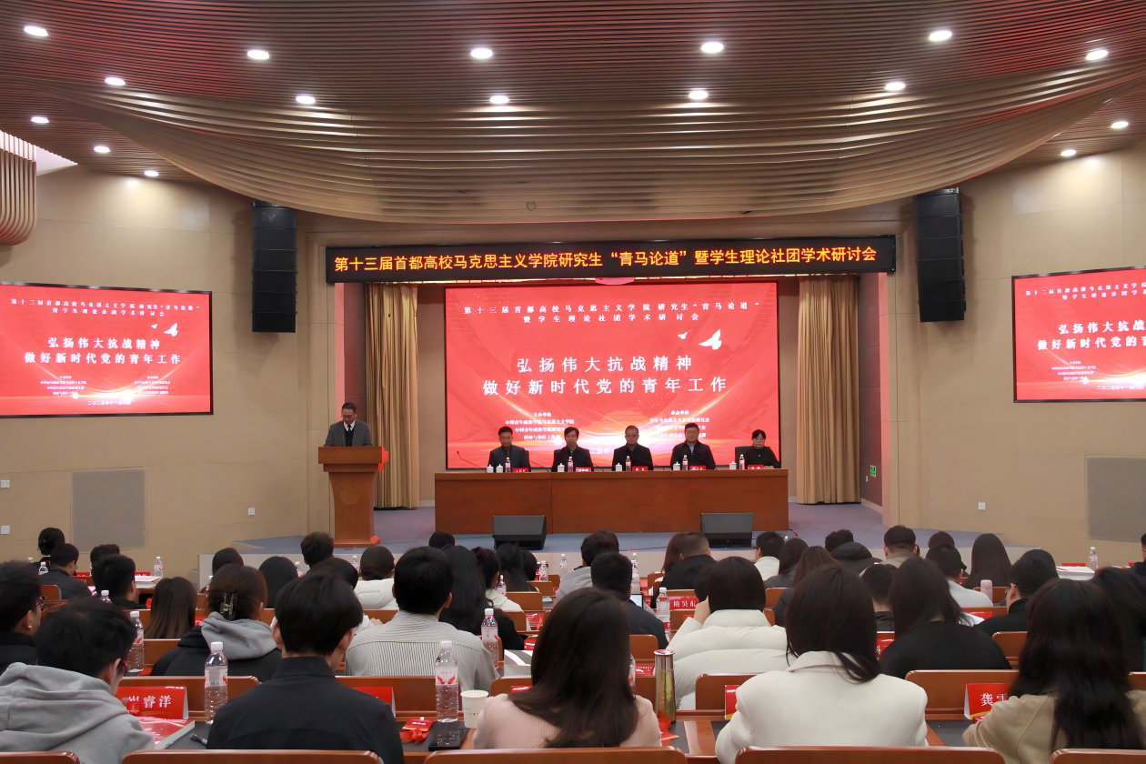 11月8日,为深入学习贯彻伟大抗战精神,庆祝抗战胜利八十周年之际,我院联合研究生部、科研与智库工作部、《中国青年社会科学》编辑部,共同举办了第十三届首都高校马克思主义学院研究生“青马论道”暨学生理论社团学术研讨会。研讨会共有70名作者参与,来自北京大学、北京理工大学、中国人民大学、北京师范大学、浙江大学、首都经济贸易大学等单位的马克思主义学院师生、专家学者汇聚一堂,围绕“弘扬伟大抗战精神,做好新时代党的青年工作”这一主题,共同探讨、交流。我院院长刘长军出席并主持会议。