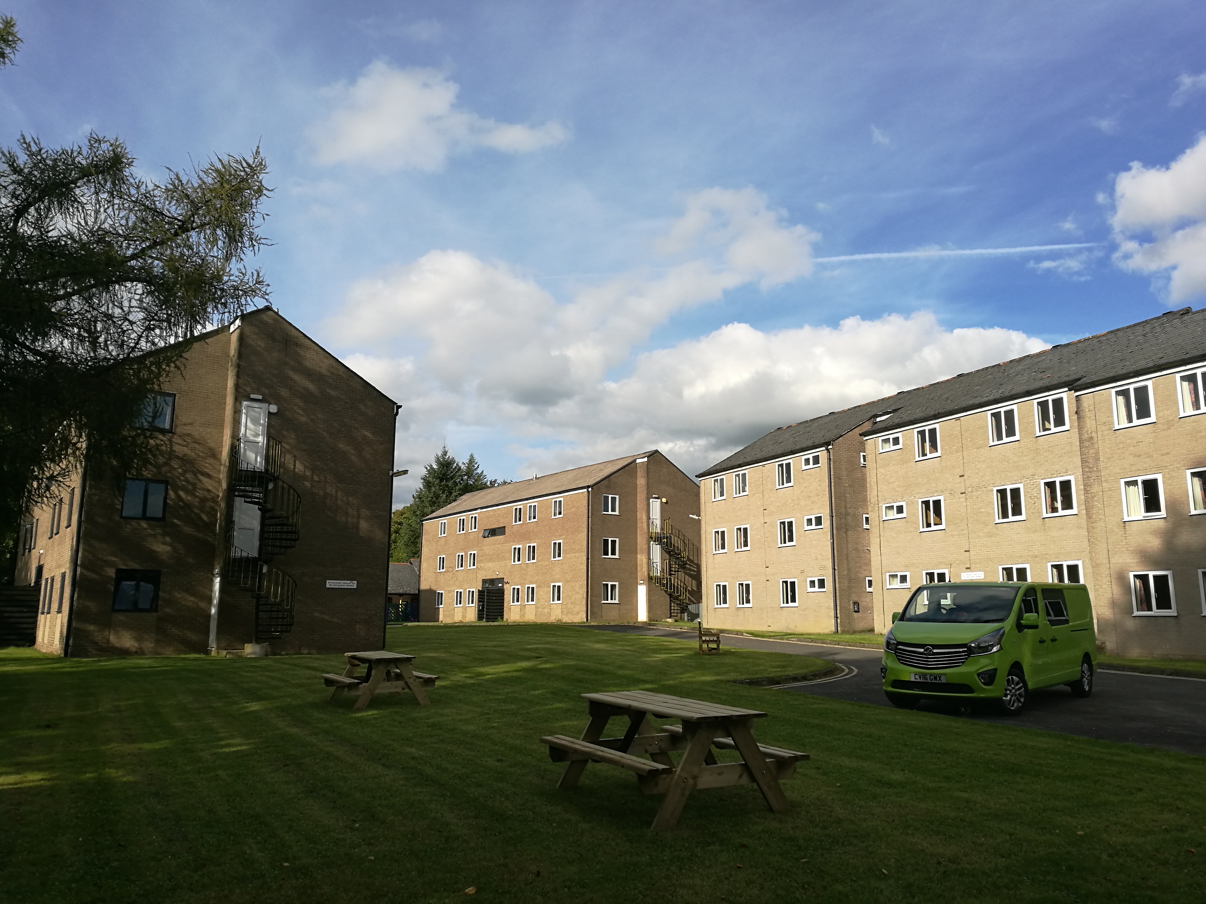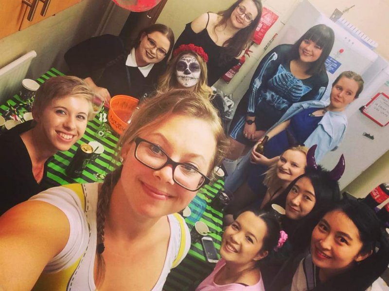校园里保留了古朴的建筑与装潢,同时设施设备也非常先进和完善。宿舍楼一般都是三层,我的宿舍是7个人共住一间公寓,每个人有自己的房间和独立卫浴。有一个公用厨房,厨房很大,不仅是做饭的地方,也是大家平时social的地方。舍友们喜欢在厨房里聊天,写作业,也会在这里开各种party。