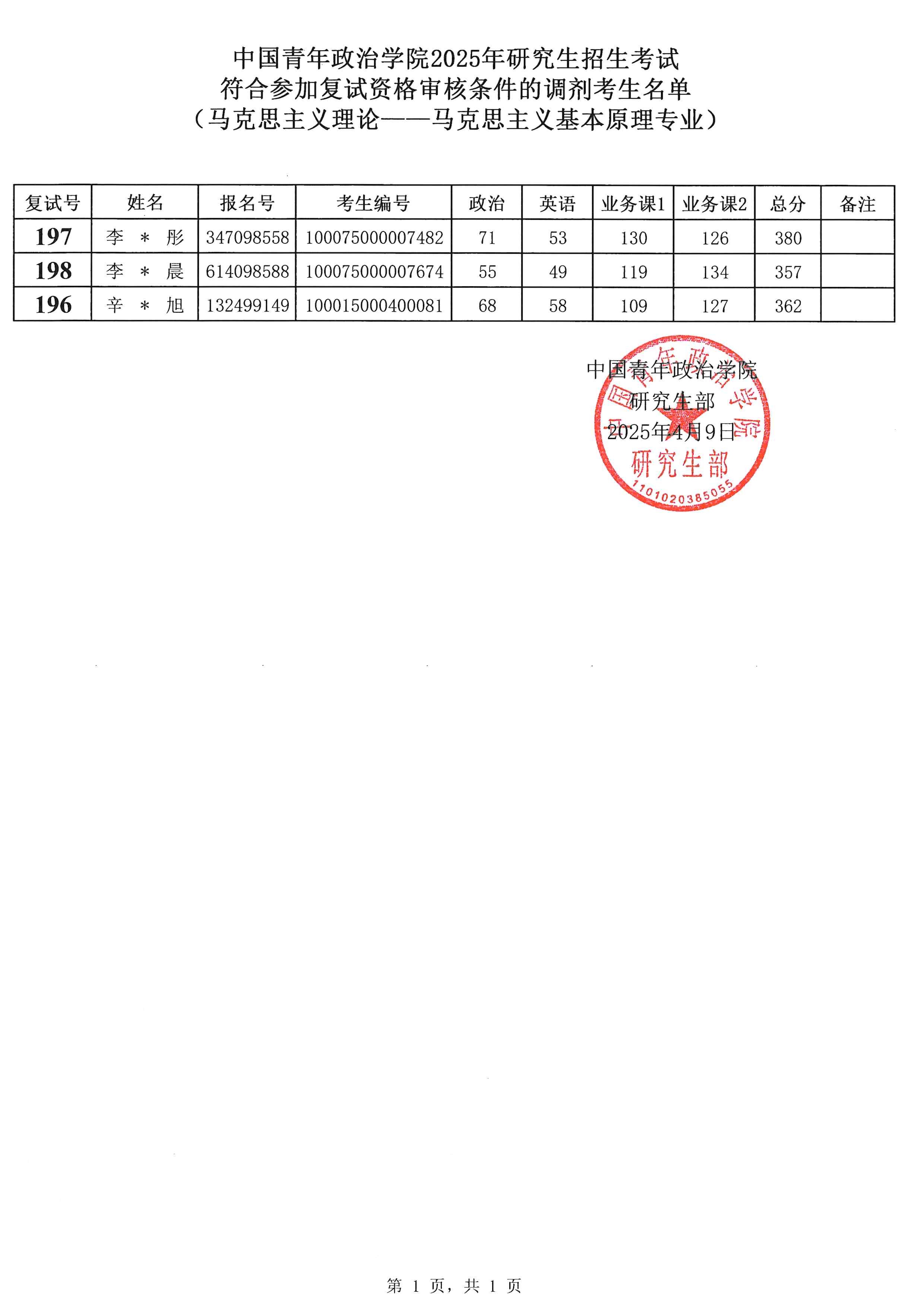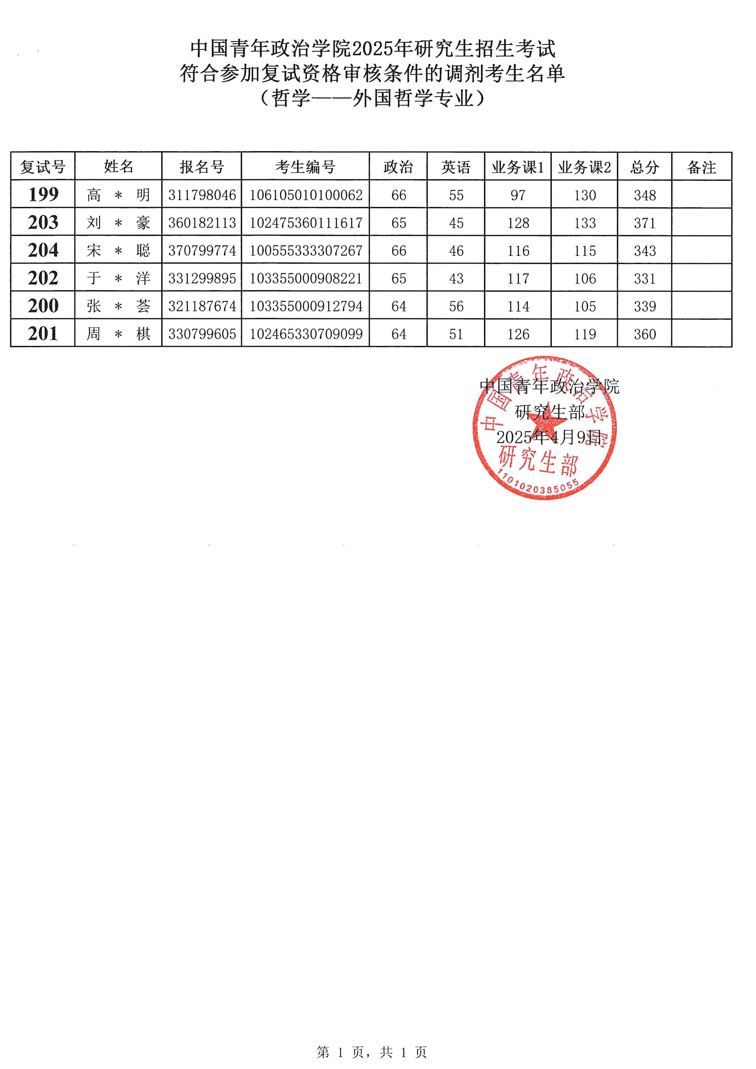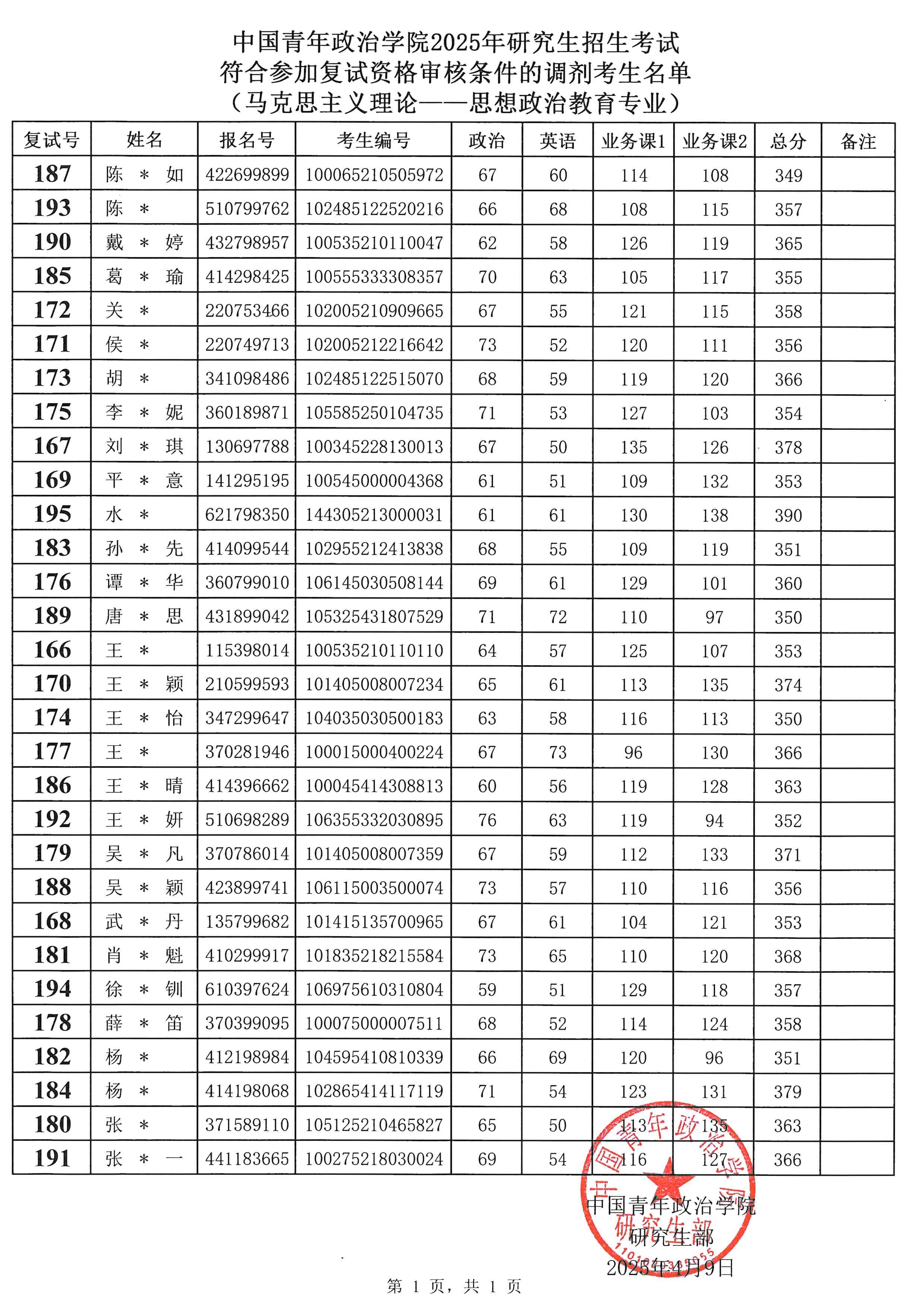 四、调剂进入复试资格审核考生名单如下(不含拒绝参加复试的考生),请考生牢记本人复试号,复试号通过以下名单获取!